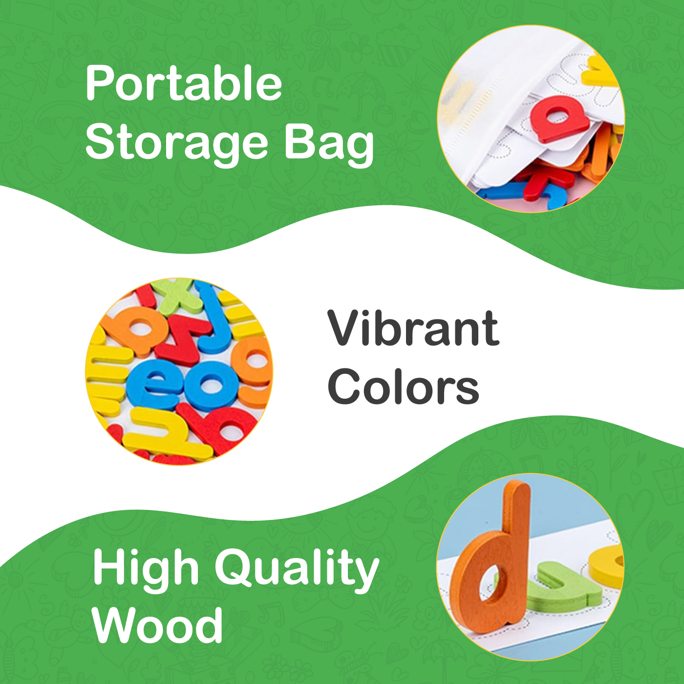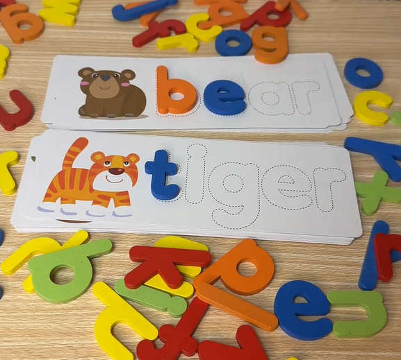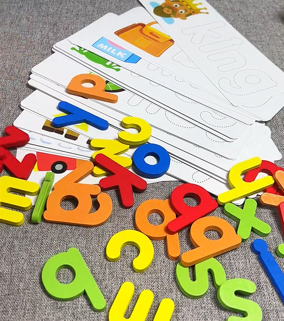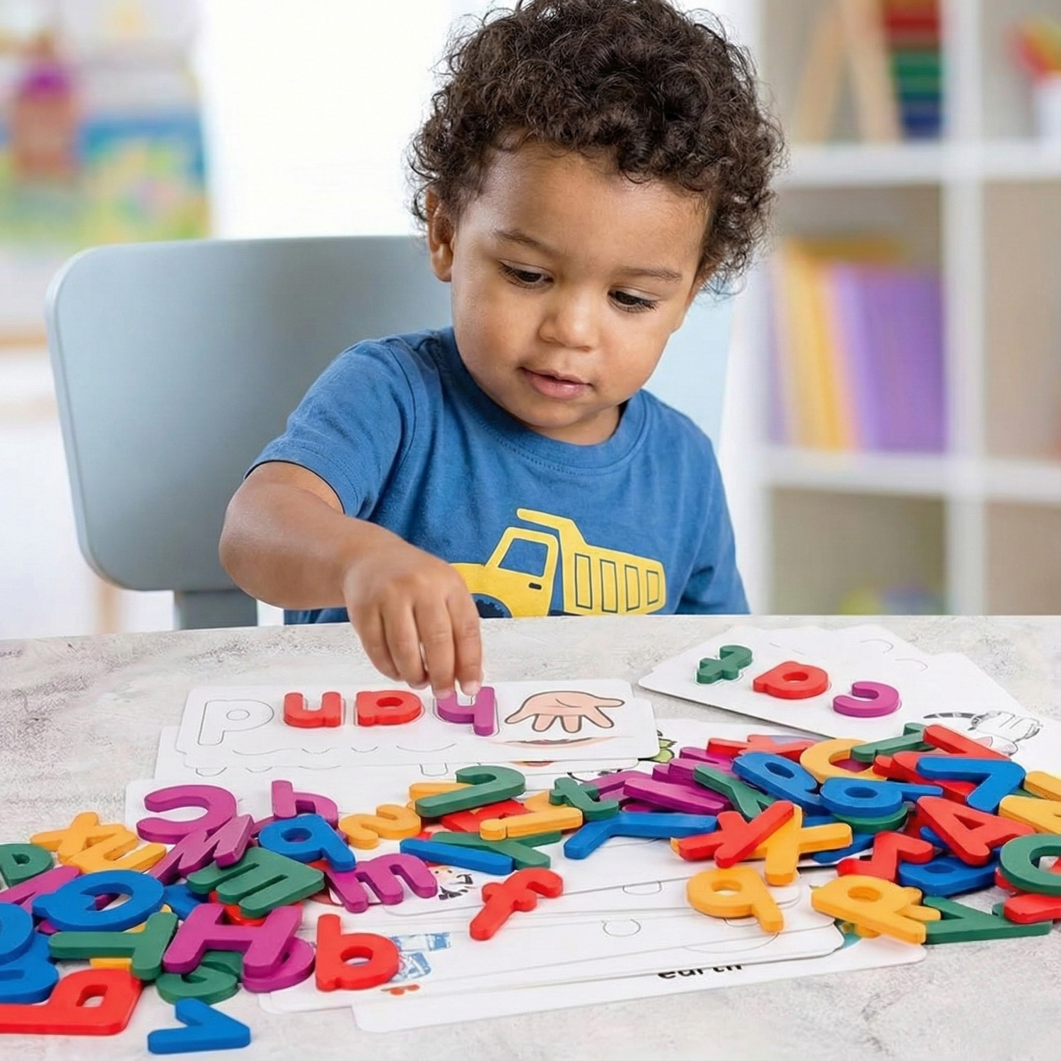 It builds essential early literacy skills through hands-on play. Kids strengthen letter recognition, phonics awareness, spelling confidence, and vocabulary development—all while having fun matching letters to pictures. The puzzle-style play improves fine motor skills, concentration, and hand-eye coordination, and boosts confidence as children complete each card on their own. It turns learning into a calm, focused, and joyful experience.